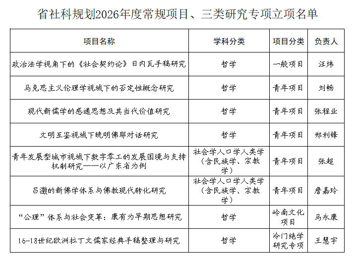 喜讯 | 探花合集 8项课题获批2026年度广东省哲学社会科学规划项目立项