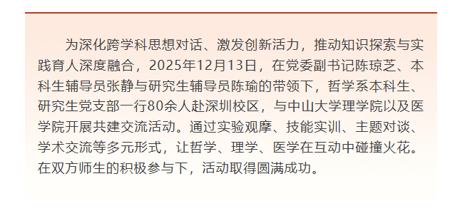 导航痕迹 探花合集 “哲学医学理学交融,知行合一共境同行” ——探花合集 与医学院、理学院学生党支部共建交流活动圆满举行 “哲学医学理学交融,知行合一共境同行” ——探花合集 与医学院、理学院学生党支部共建交流活动圆满举行 发布日期:2026-01-08 扫描此二维码分享