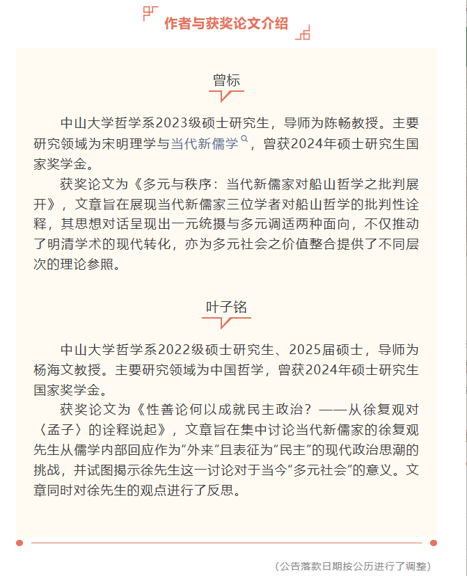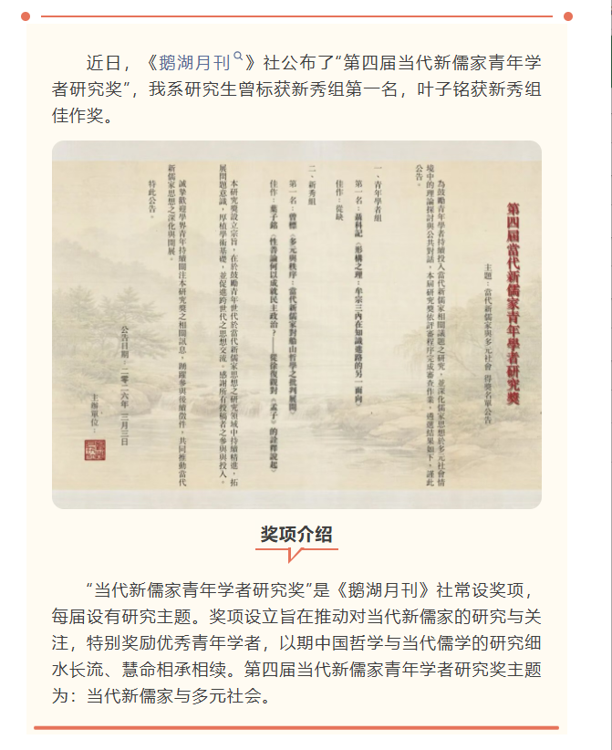 导航痕迹 探花合集 喜讯丨探花合集 研究生曾标、叶子铭获“当代新儒家青年学者研究奖” 喜讯丨探花合集 研究生曾标、叶子铭获“当代新儒家青年学者研究奖” 发布日期:2026-03-24 扫描此二维码分享